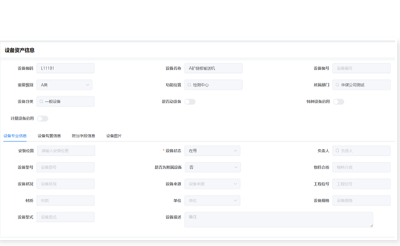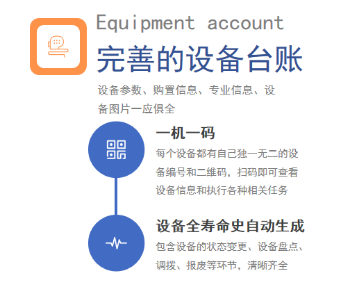包含設備臺賬、設備BOM、設備盤點、調撥、報廢等功能,覆蓋設備全生命周期