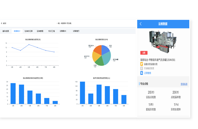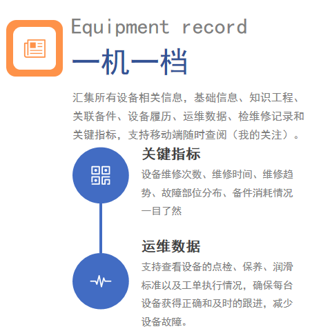 包含檢維修記錄、設備履歷、運維數(shù)據(jù)、關鍵指標、知識工程和關聯(lián)備件功能,數(shù)據(jù)更全面