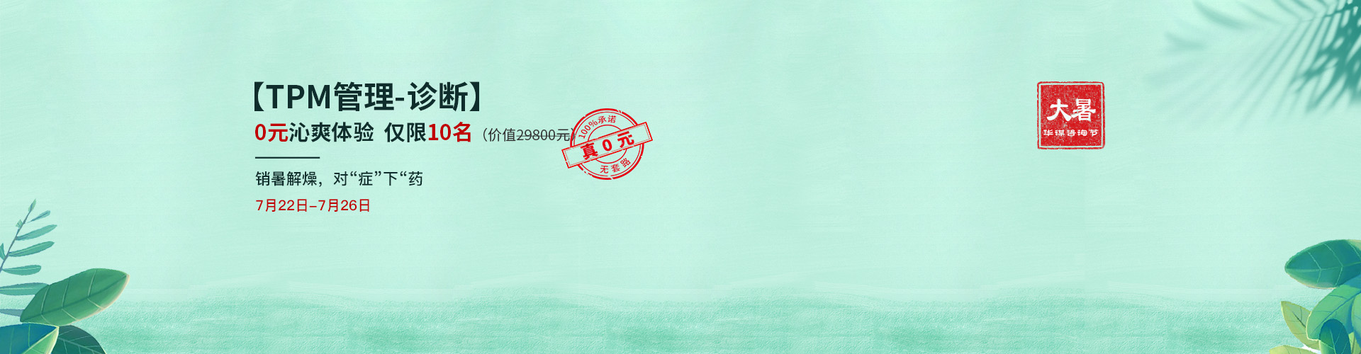 TPM是華謀咨詢創(chuàng)始人岳華新先生,根據(jù)多年在韓國三星的TPM工作經(jīng)驗(yàn)和理論研究,結(jié)合中國企業(yè)的管理特點(diǎn),創(chuàng)立適合中國企業(yè)特點(diǎn)的TPM管理模式,稱為China TPM, 簡稱TPM。TPM自創(chuàng)立以來,得到快速傳播,給中國企業(yè)帶來巨大的財(cái)務(wù)收益。-